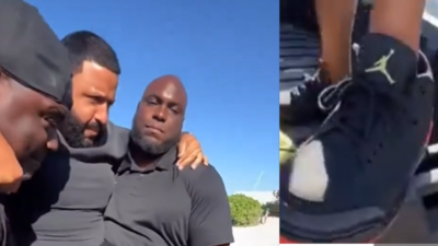 DJ Khaled gets carried by 2 men because of Air Jordan shoes