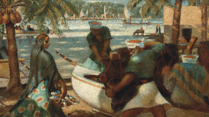 Topping the sale was Pecheurs à Rosette by Mahmoud Saïd, painted in 1941. The painting is a snapshot of authentic life by the Nile, with fishermen diligently unloading their catch. Pêcheurs à Rosette was acquired for $818,500 (estimated at $400,000-600,000).