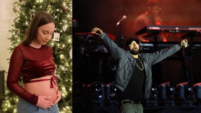 Although Eminem hasn't made public comments on the birth, his 2024 music video for "Temporary" gave fans an insight of his emotional response to the news of his daughter's pregnancy. At the end of the heartwarming video, his daughter gives him a blue baby jersey with the words "Grandpa" and a sonogram. The rapper's look of shock and tears said it all.