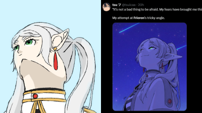 SpaceDev1 first shared the fan art on a Reddit sub dedicated to the beloved anime and manga, Frieren: Beyond the Journey's End. The artist wrote, "I practiced drawing faces in a different angle but it looks kinda weird lol."