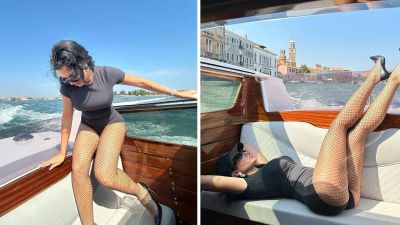 On Instagram, Georgina posted multiple pictures of her arrival in Italy to attend the 81st International Venice Film Festival at Venice Lido as she appeared in a hot black shot with fishnet tights and a black t-shirt.