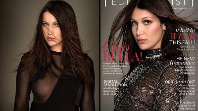 Bella, whose big sister is Gigi Hadid, smoulders and pouts at the camera on the front of the magazine.