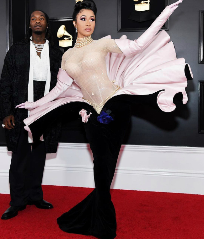 The Grammys parade of often out-there fashion kicked off in a downpour Sunday in Los Angeles and some of the music industry’s finest opted for looks from the Middle East while rapper Cardi B stole the night with her mind boggling gown.