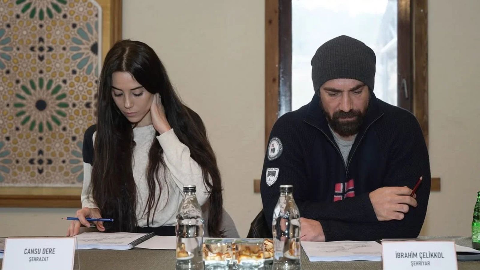Executives from the platform gave a short talk about the image and said that the show would be a mix of myth and history. When Şehriyar, who has been hurt by betrayal, marries the smart and cunning Şehrazat, his life changes forever. She helps him get better and change through the stories she tells.