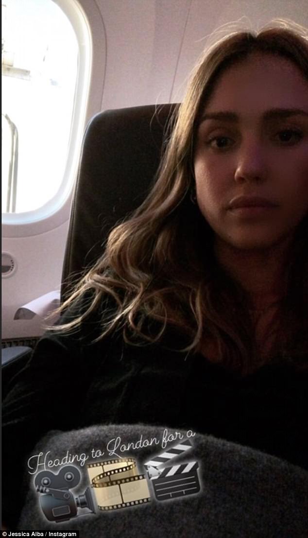 On Sunday night the star shared a selfie from the plane, as she told her Instagram followers she was headed across the Atlantic for a film project.