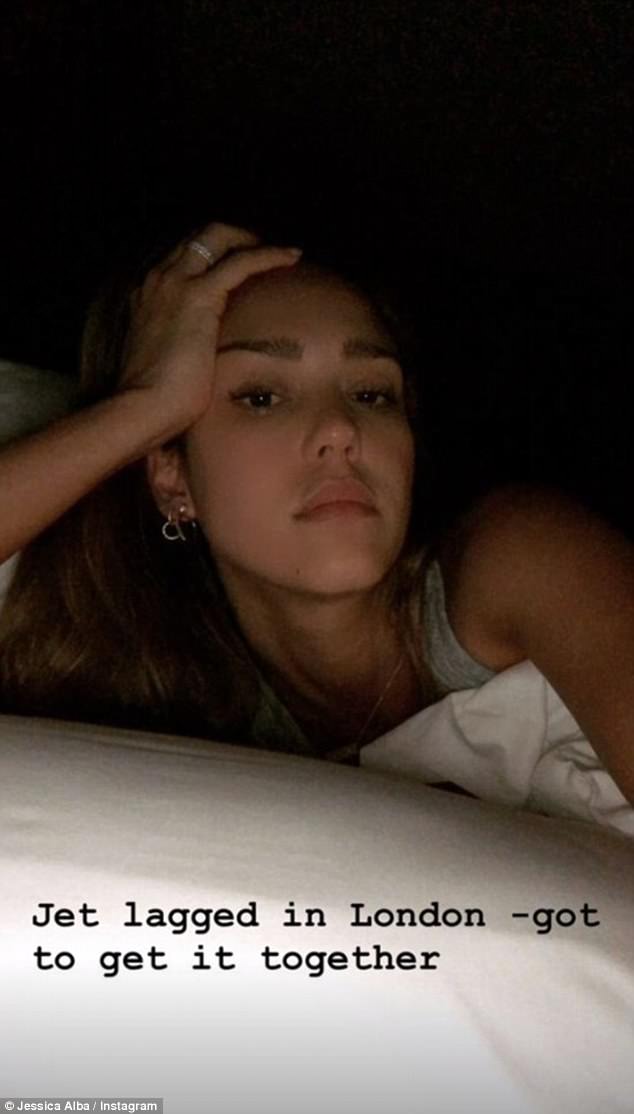 But the long distance had caught up with Jessica by Tuesday afternoon as she shared another selfie from her hotel room, captioning the moody pic: 'Jet lagged in London, got to get it together.'