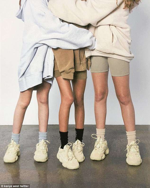 Laced up: Several models embrace wearing the Supermoons along with the trademark Yeezy shorts and hoodie combos