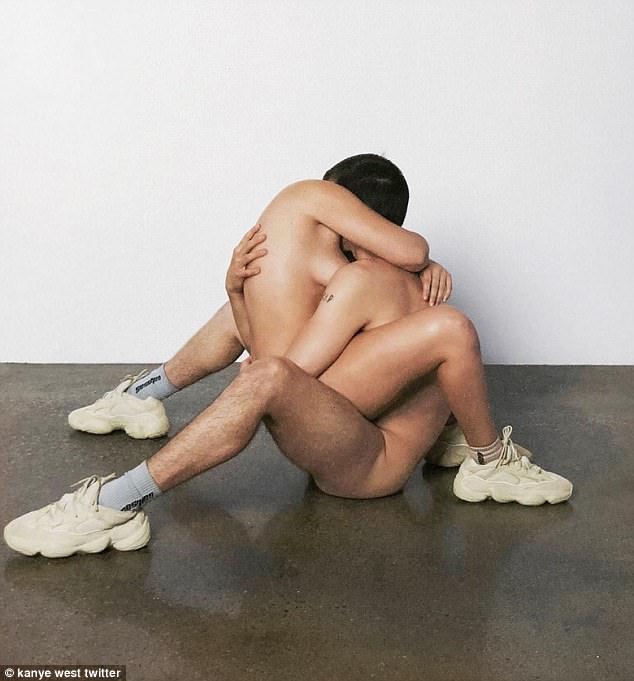 The rapper-turned-designer surprised fans as he took to Twitter posting dozens of NSFW images of models wearing the Yeezy 500 Supermoon Yellow sneaker - and not much else.