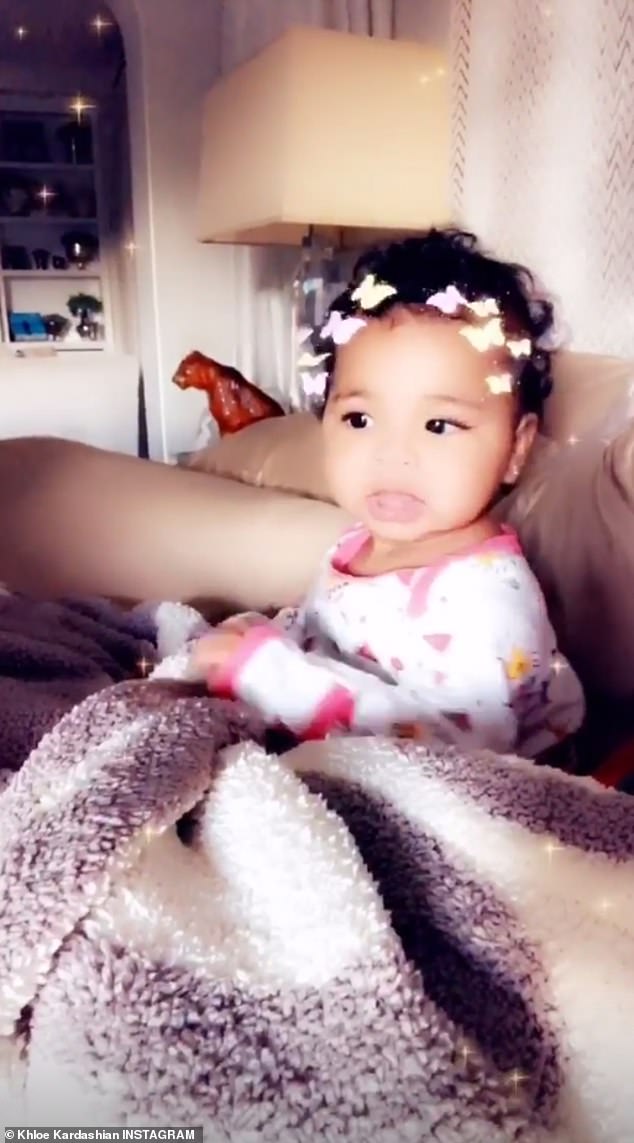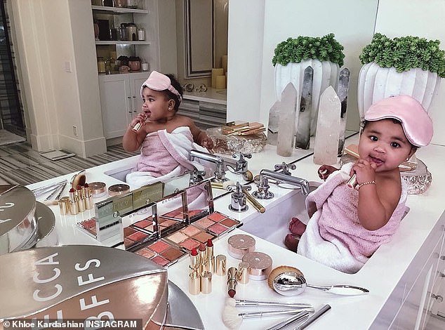 Earlier in the week, Khloe boasted about her daughter's affinity for cosmetics as the nine-month-old sat in the sink wrapped in a fluffy pink towel and matching silk sleep mask.