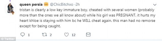 He WILL cheat again': The fan made several disparaging comments about Tristan, 27