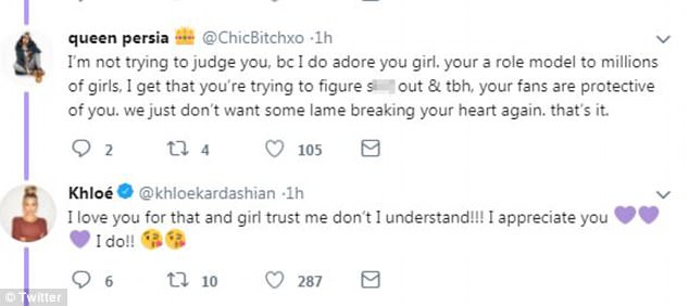 Khloe expressed her appreciation, replying, 'I love you for that and girl trust me don’t I understand!!! I appreciate you I do!!' while adding some kisses and heart emojis.