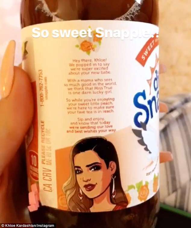 The 33-year-old reality star posted a Snapchat video on Tuesday featuring the beverage and a sweet message on the label that began: 'Hey there Khloe!'