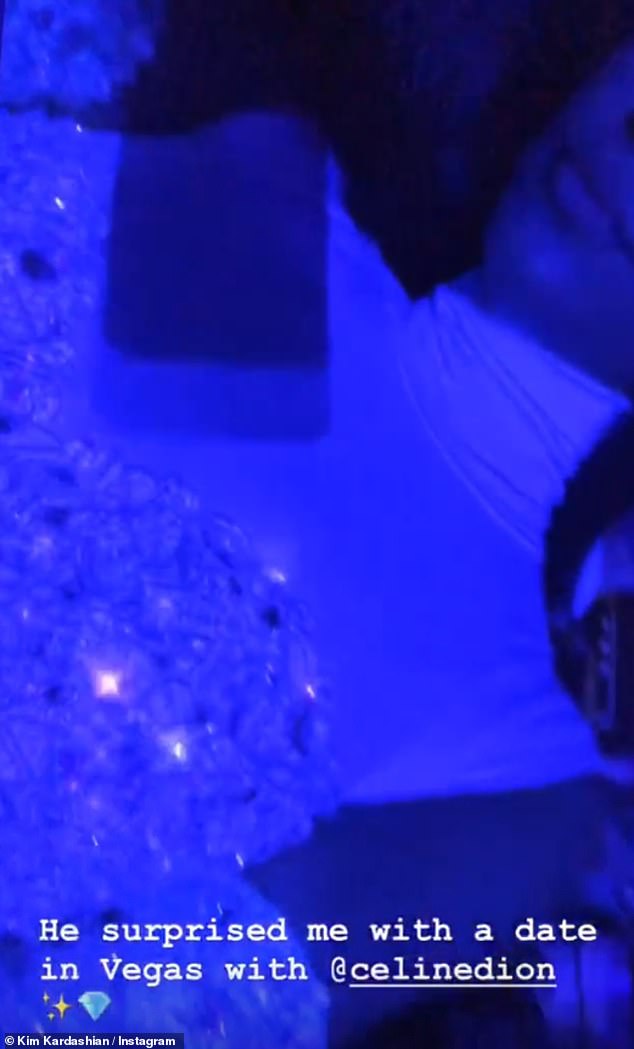 Loving life: Kanye West whisked Kim Kardashian off to Las Vegas for a surprise date night on Saturday, with the couple attending a Celine Dion concert before meeting the star backstage