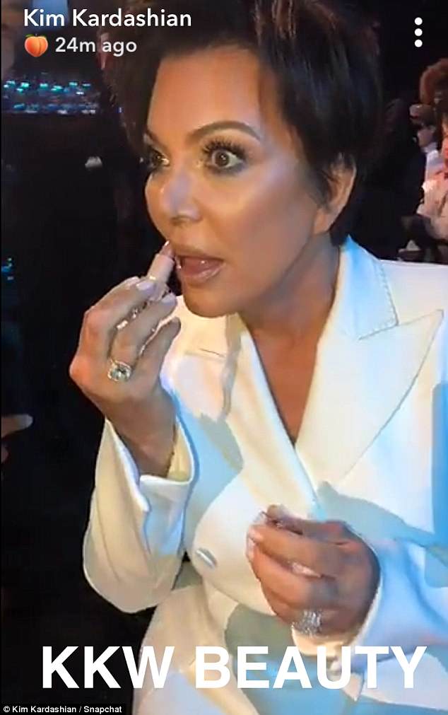 She captured mom Kris in a candid moment putting on lipstick, which she captioned: 'KKW beauty.'