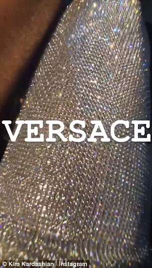 Kim gave Versace a shout out for designing her look with a sparkling close up of her skirt.