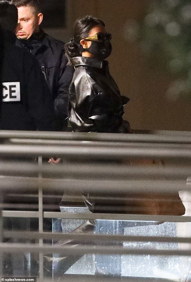 Kourtney was seen wearing a black face mask and shades, with her raven locks tied into a ponytail as she walked through an airport.