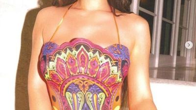 The top featured patterns which resembled a peacocks feathers while the bottoms featured the Italian couture brand's signature baroque style.