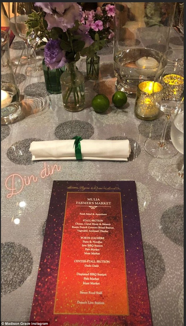 Feast: Liam and his guests dined on a menu of traditional Indonesian food including BBQ meats, noodles and muscle linguine