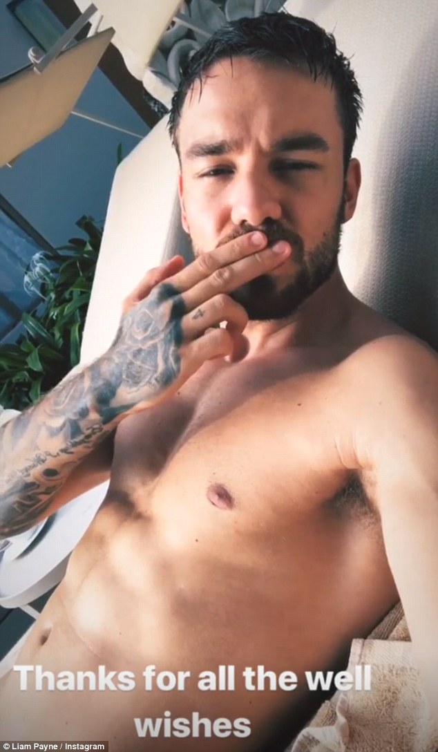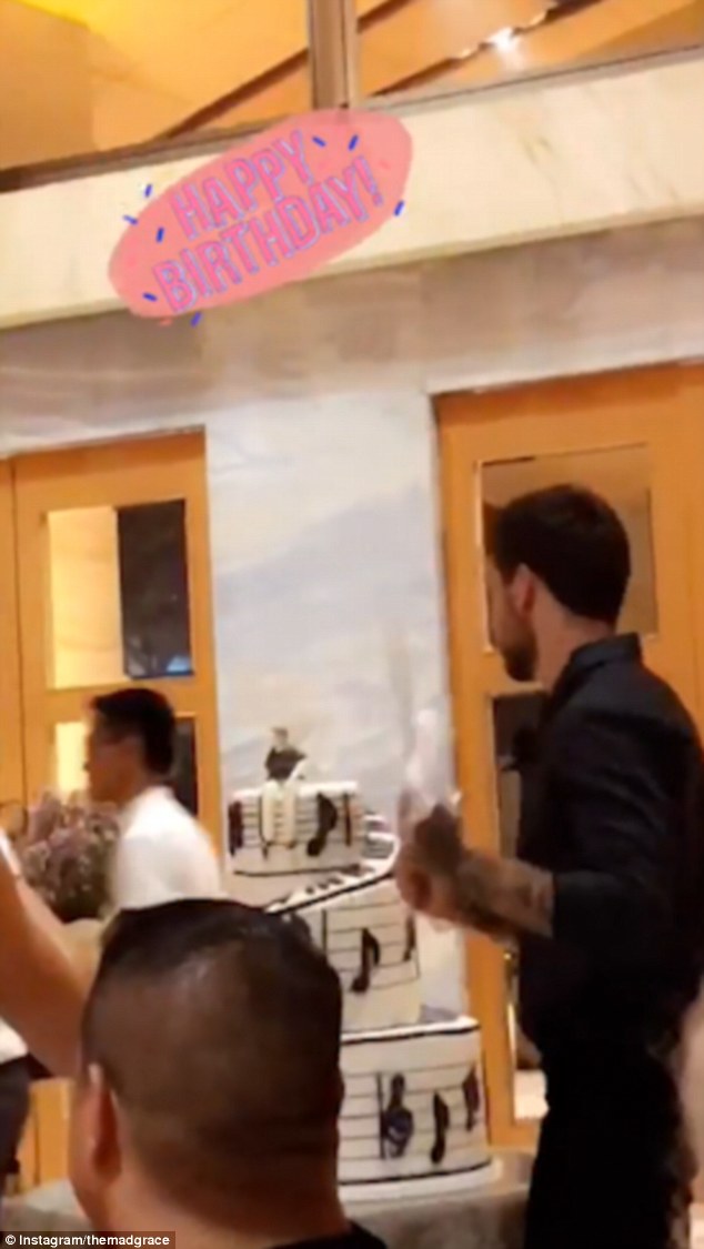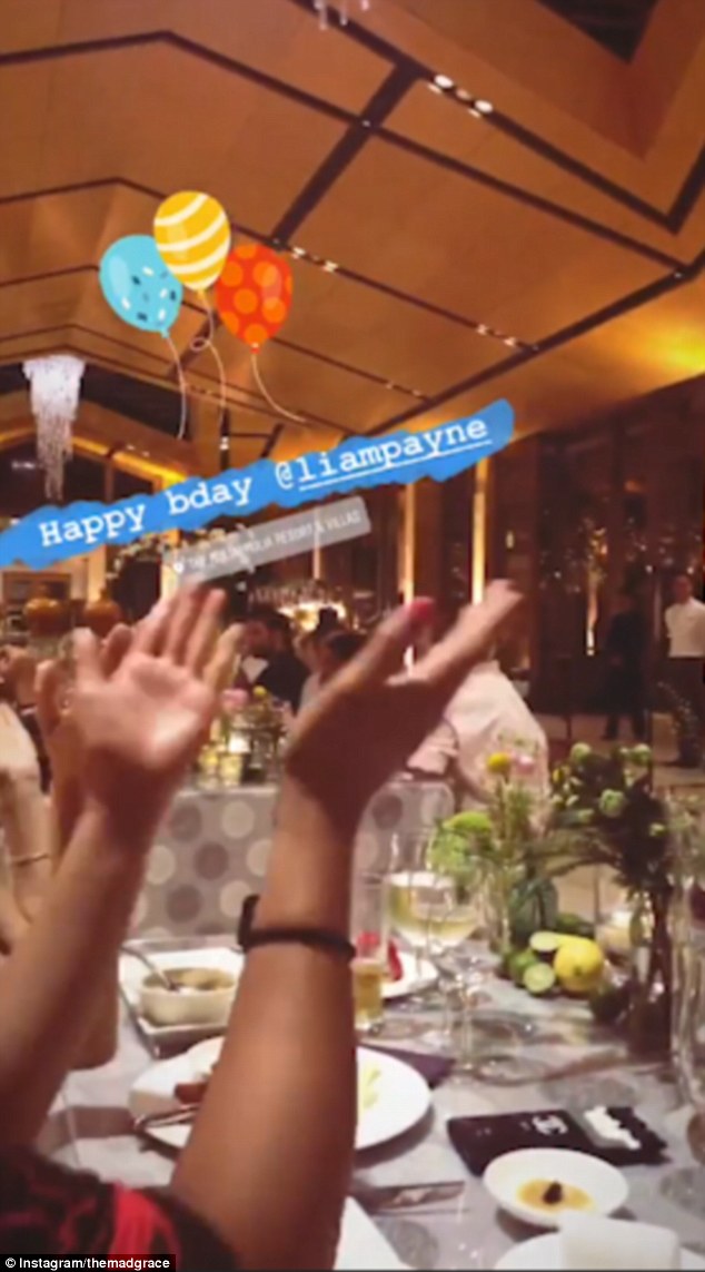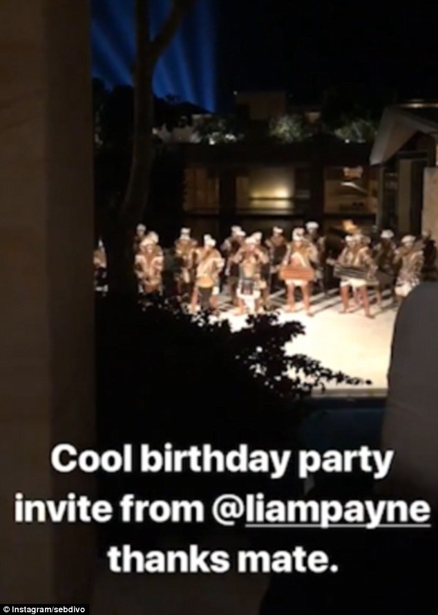 Life of luxury: While Liam himself has yet to share any social media from his bash, he did take to his Instagram stories earlier in the day as he sunned himself by the pool