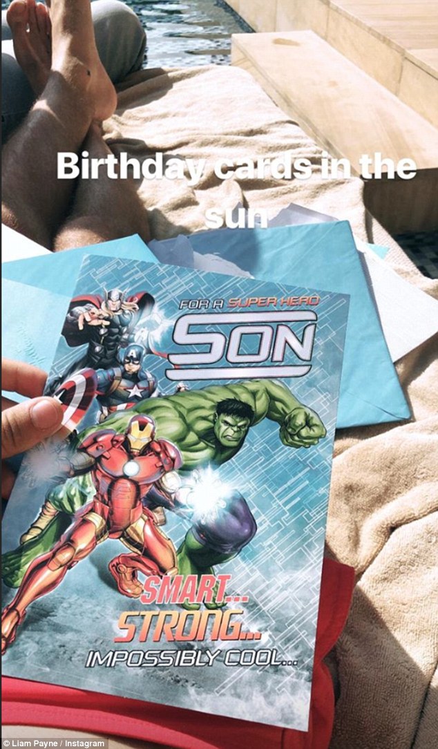 Sharing a look at his superhero card, Liam also thanked his fans for their birthday wishes as he worked on his tan.