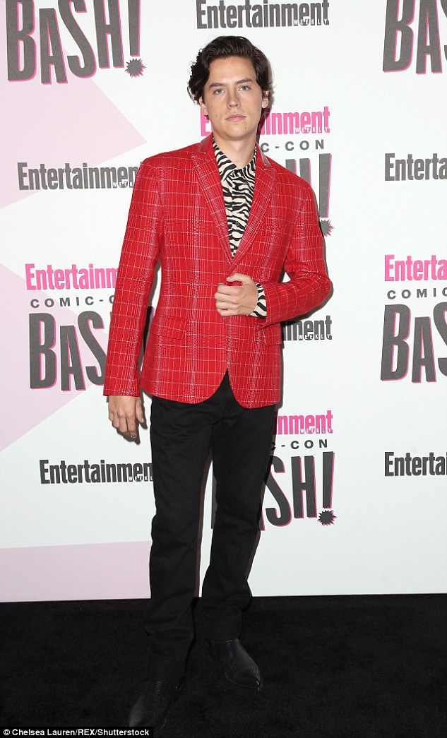 Lili's co-star and rumoured beau Cole Sprouse, 25, was pictured at the bash wearing a bold red jacket over a printed shirt, pairing his look with black skinny jeans.