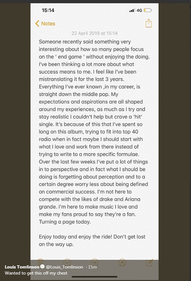 And Louis Tomlinson, 27, has vowed to live in the moment more after revealing he had been focusing on the 'end game' when it comes to his life and his music career.