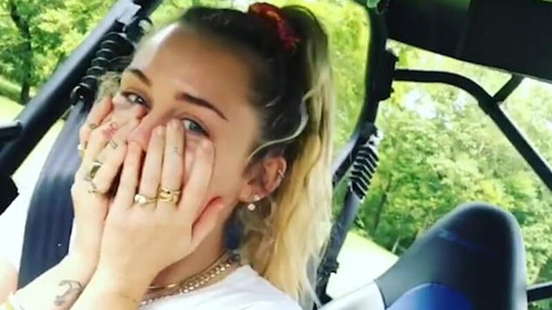 The film star continued to smile as they drove before emitting a high-pitched scream that made Miley jump and put her face in her hands as Liam laughed.