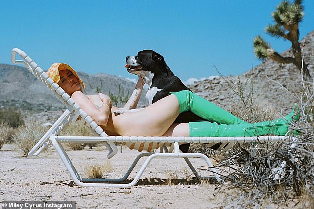 Woof! On Saturday, Miley Cyrus, 26, shared a new mostly nude photo with man's best friend to her Instagram