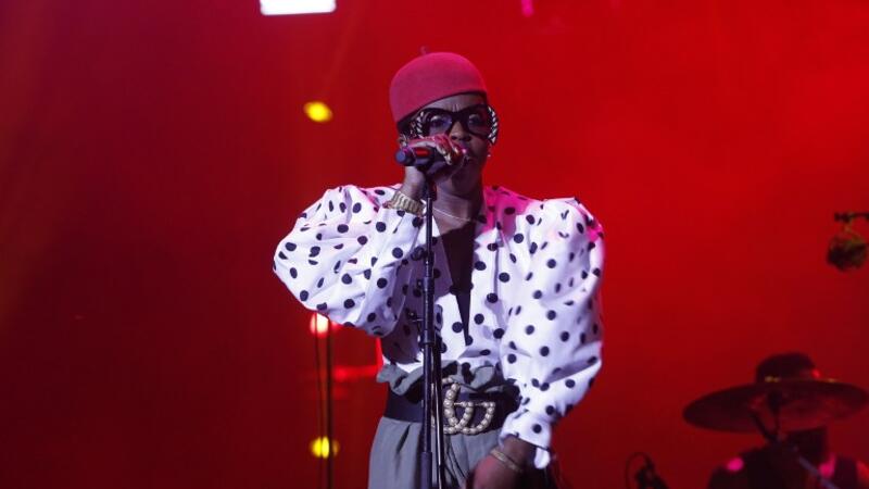 Wearing a Fez cap, black and white polka dotted shirt, oversized sunglass and earrings, the 41-year-old rapper performed a set of 19 songs.