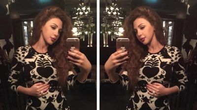 Myms showed off her baby bump in a form-fitting dress while out to dinner on her vacay, as seen in the cover image, but her growing tummy was carefully concealed under a warm fluffy coat while out and about in London town with her gal pal and celebrity choreographer Paulette Minot.