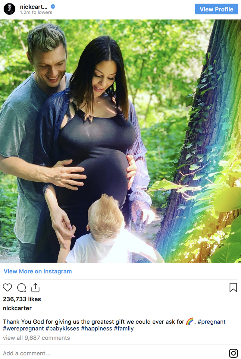 Carter shareda photo of himself embracing Kitt and her baby bump as they smile at their 3-year-old son, Odin Reign.