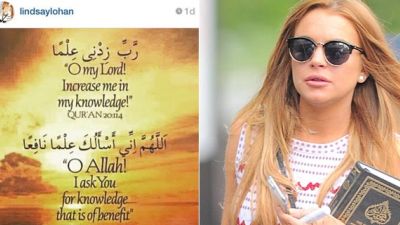 The actress - who is of Irish and Italian heritage and was raised as a Catholic - held a hard copy of the Muslim holy book in her arm as she finished a day of office work at a children's center. She reportedly arrived two hours late.