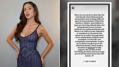 Her statement on Instagram stories was followed by a donation link calling for a fundraiser for the children in Gaza through the UN’s international emergency fund.