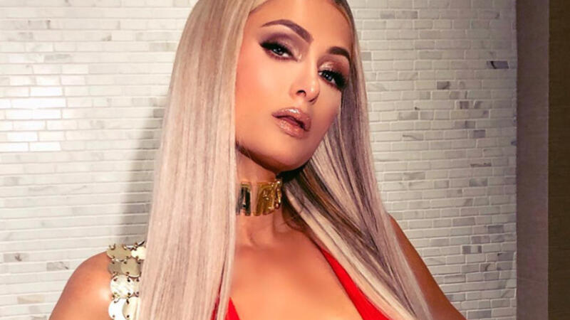 Paris Hilton Wows a Red Jumpsuit as She Promotes Skin Care Line