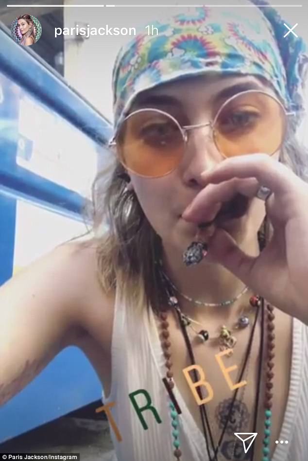 Smoke on the water: 'Tribe' she wrote on top of video of her puffing on a hand-rolled cigarette, smiling, and then handing it off to a pal