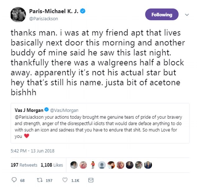 Paris Jackson has cleaned up a star on the Hollywood Walk Of Fame that shared the same name as her famous late father.