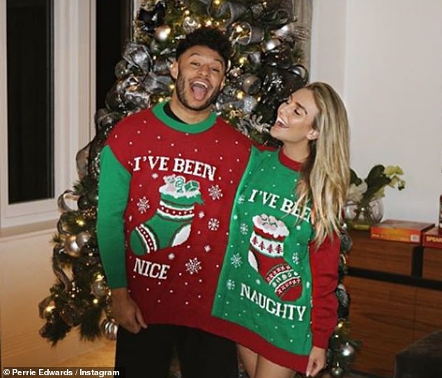 Cute couple: Perrie Edwards splashed out on a brand new Range Rover for her mother Debbie for Christmas as she celebrated the day with boyfriend Alex Oxlade-Chamberlain