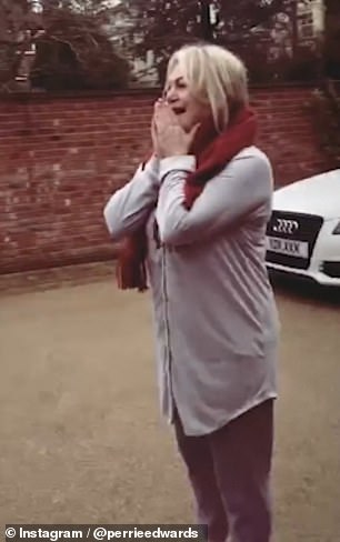 Shock: Perrie captioned the clip: 'My favourite human deserves her dream car... in shock'