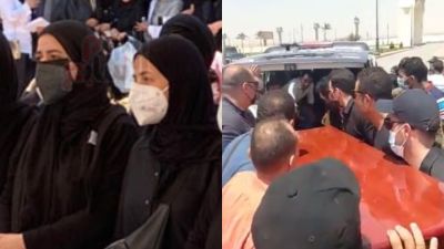 The body of Dalal Abdel Aziz was accompanied by her two daughters, Donia and Amy Samir Ghanem, as well as their husbands Ramy Radwan and Hassan Al-Raddad.