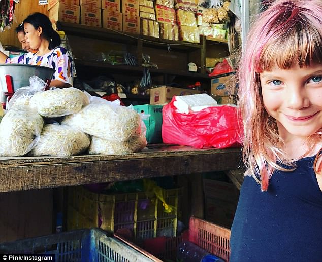 Trip of a lifetime: Willow showed her attitude as she posed for a family photo during a weekend trip to Bali in between a series of gigs Pink is playing in Perth