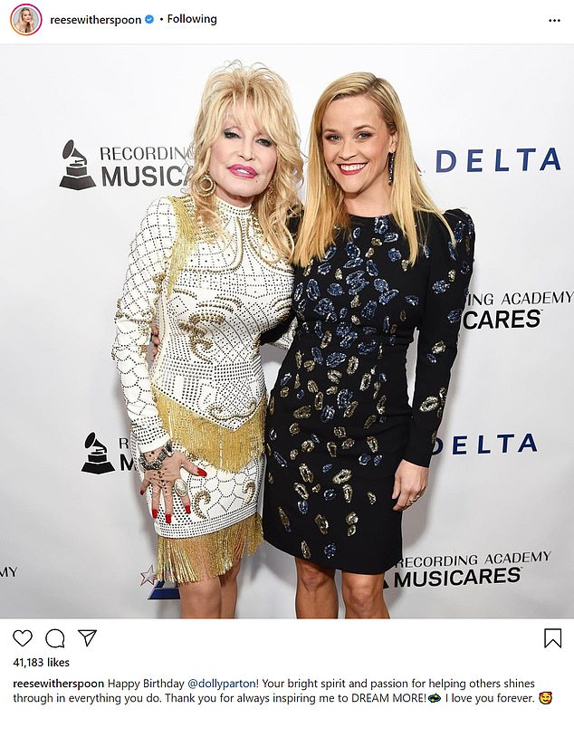 Reese Witherspoon was one of the first people to send her love, sharing a photo of the glitzy pair together and writing: 'Your bright spirit and passion for helping others shines through in everything you do.