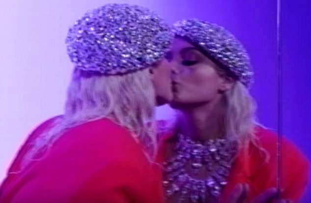 But she certainly sexes things up with her behaviour as she gives herself a steamy smooch in the mirror and gyrates on the floor.