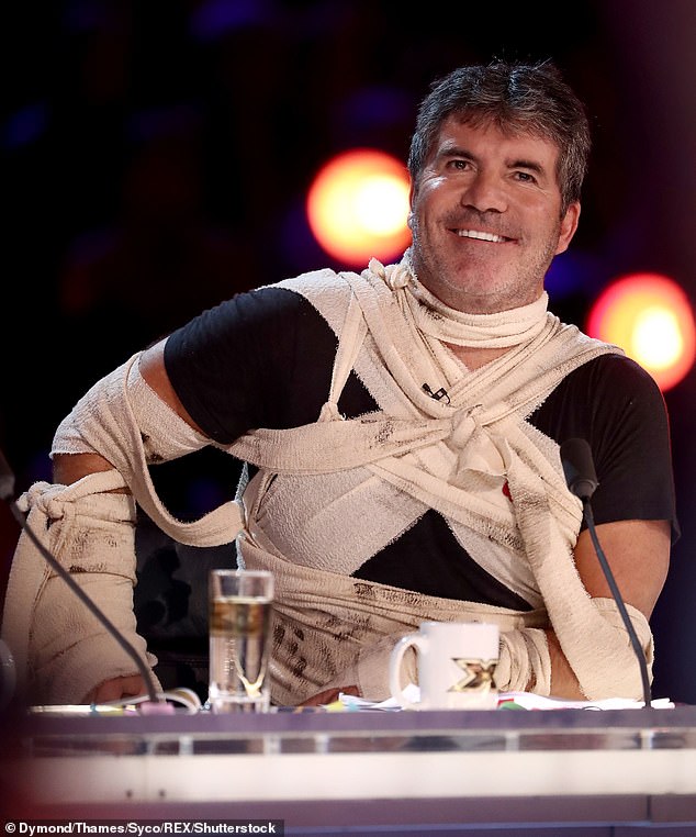 Simon had also gone the whole hog for the episode dubbed 'Fright Night', wrapping himself in layers of cloth and transforming into a Mummy.