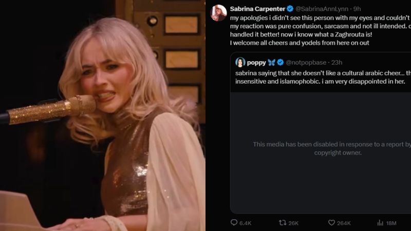 This comes after a controversial social media user named "Poppy" wrote on X, "sabrina saying that she doesn’t like a cultural arabic cheer… this is so insensitive and islamophobic. i am very disappointed in her."