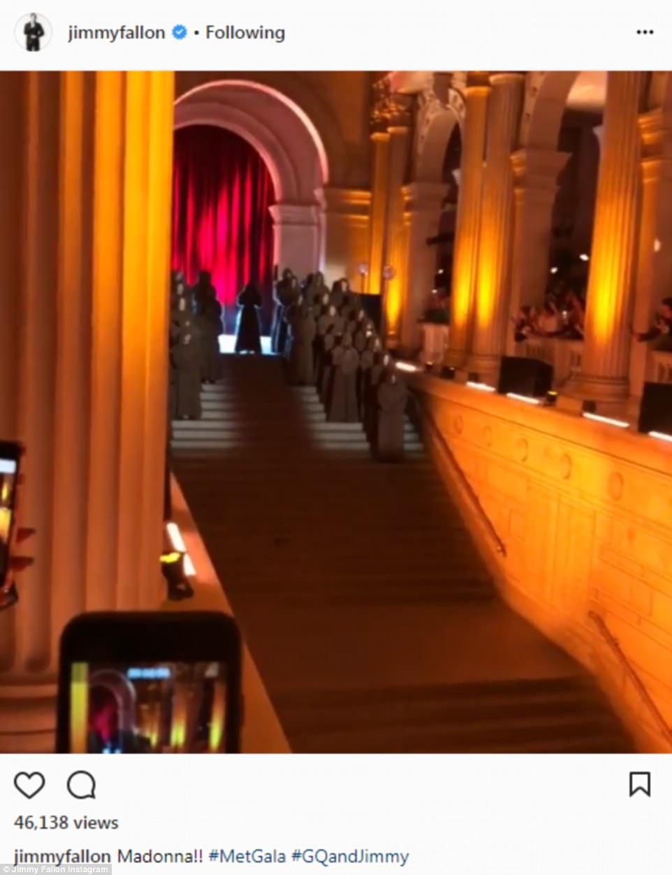 Taking to Instagram Madonna shared a snap of her in a white sheer dress mid-performance on the steps.