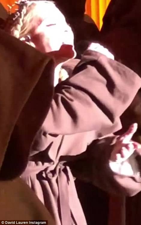 Memorable: The songstress was surrounded by monks as she performed on some steps in the museum
