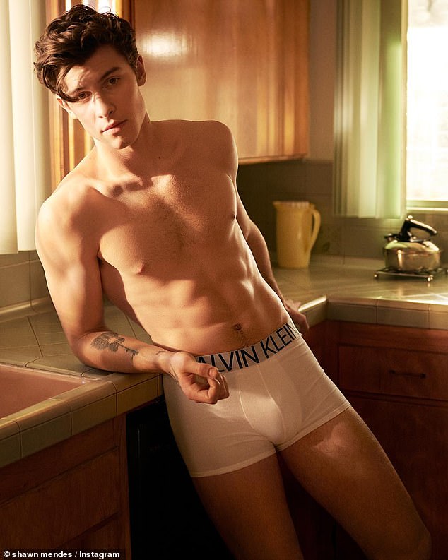 The Stitches performer was featured leaning provocatively against a kitchen countertop in one of the images as sunlight streamed through the windows.
