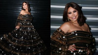 Sherine appeared in a black, and gold dress designed with small white jasmine flowers. Many fans said that "Sherine is back" as she appeared very fresh following her divorce from Hossam Habib.