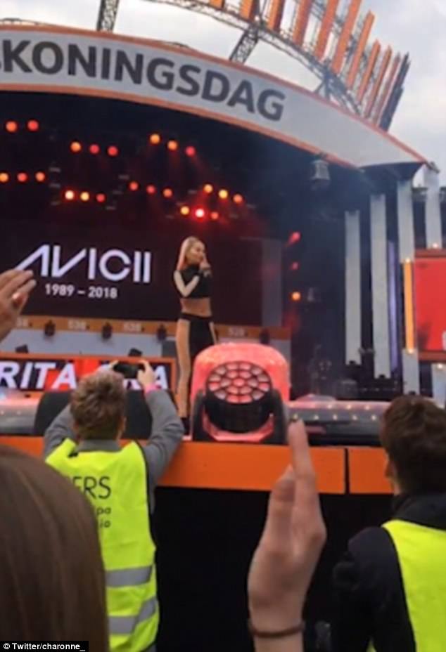 And Rita Ora commemorated the life of DJ Avicii as she took to the stage at the 538Koningsdag Festival in the Netherlands on Friday.