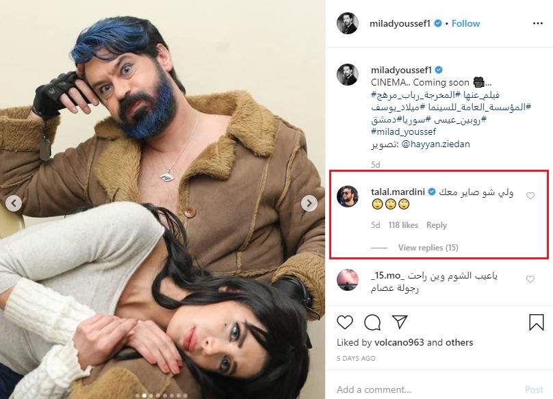 The photos sparked wide reactions among Milad's fans, who were surprised by his appearance and left cynical comments, as they compared his new persona to his macho role of Issam in Bab Al-Hara.